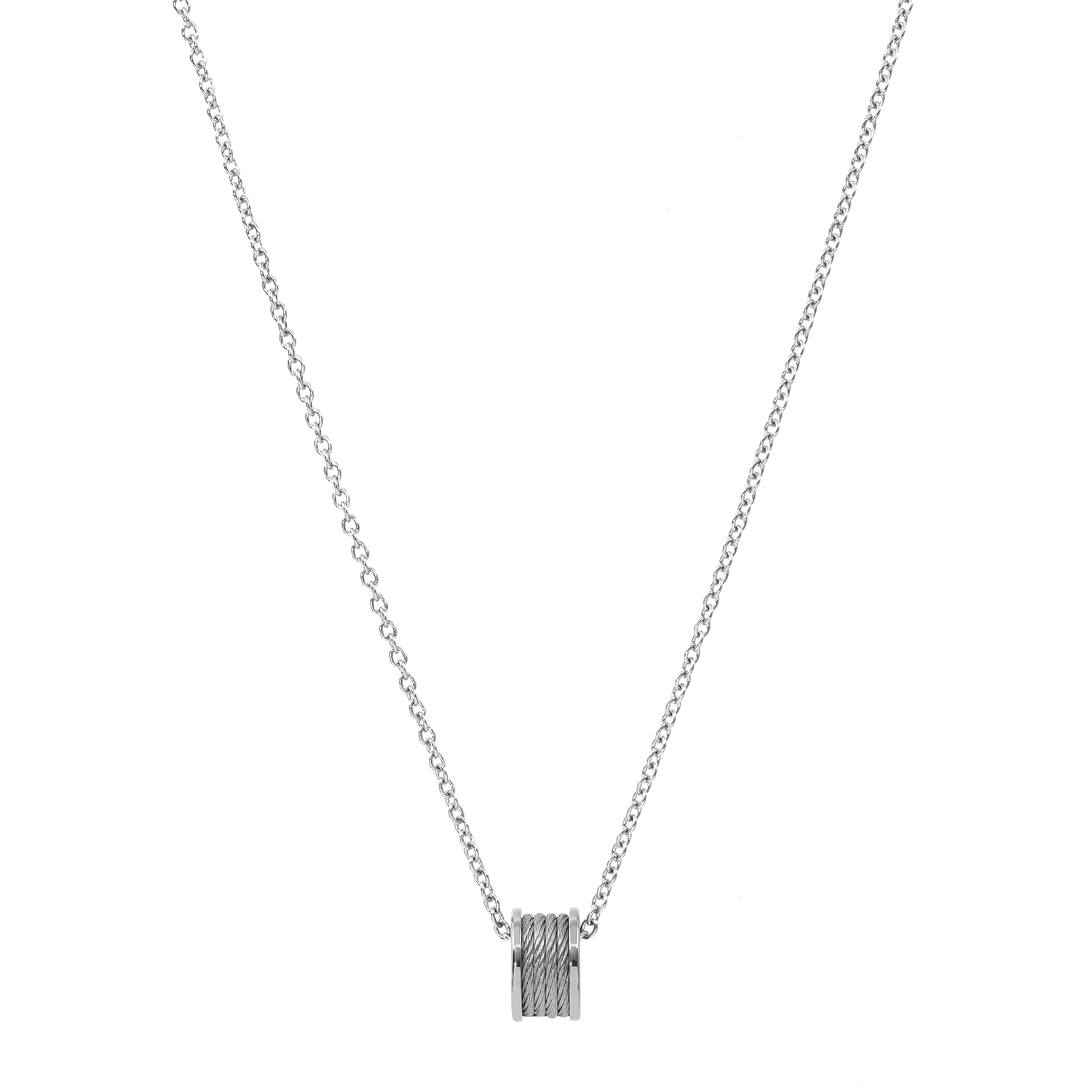 Cet élégant collier de la collection FOREVER , best-seller de Charriol, met brillamment en valeur notre emblématique câblage en acier inoxydable tressé. Conçu pour apporter une touche de glamour à votre look, il présente un losange en forme de tonneau, inspiré de la forme de la bobine d'un couturier. Cinq lignes ultrafines de notre câble signature sont encadrées par un bord en PVD d'or jaune poli. Un design unisexe moderne, qui incarne notre savoir-faire de renommée mondiale et nos détails luxueux.