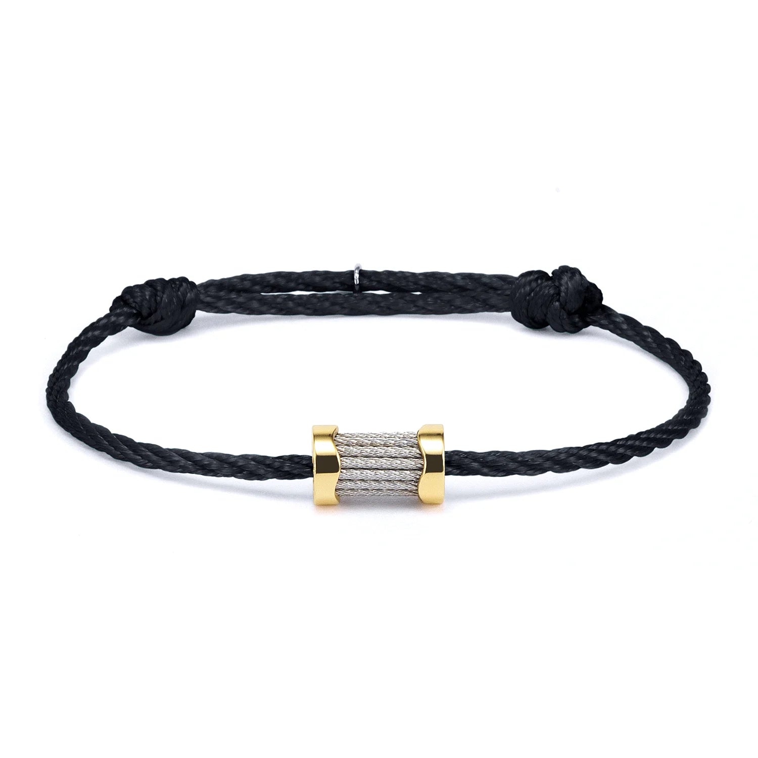 Un nouveau souvenir élégant et discret vient s'ajouter à notre collection toujours très populaire FOREVER . Ce bracelet ultra-moderne en corde noire est orné d'une breloque tonneau plaquée or jaune, décorée de notre câble d'acier emblématique. Sa forme organique s'inspire de l'enroulement et de l'arche des vagues de la mer. Idéal pour tous les jours, il sera particulièrement apprécié par les signes d'eau du site zodiac - Poissons, Scorpion et Cancer - ou par les amoureux de l'océan. D'un attrait universel et incarnant la qualité de fabrication de Charriol, il s'agit d'un accessoire élégant et facile à porter.