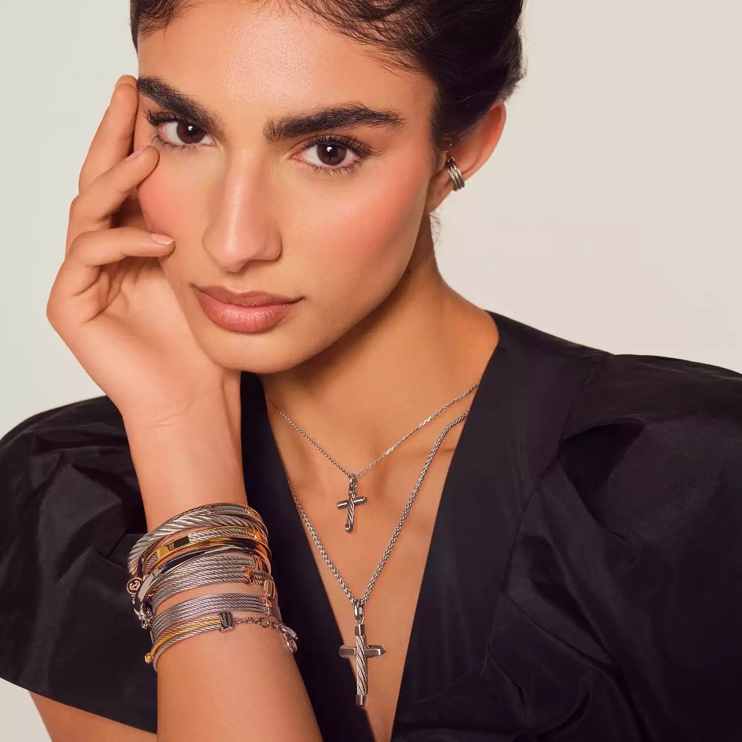 Découvrez l'élégance intemporelle et le symbolisme profond de notre dernière création Charriol : le collier croix Celtic . Imprégné de l'héritage Celtic et du raffinement contemporain synonyme de la marque Charriol , ce collier incarne la fusion parfaite de la tradition et de la modernité.